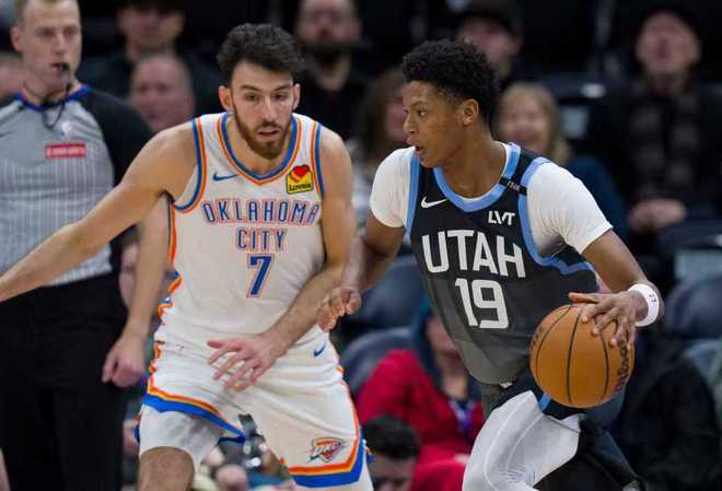 雷霆過去14場(chǎng)豪取14連勝,創(chuàng)造本賽季聯(lián)盟最長(zhǎng)連勝紀(jì)錄,且前23場(chǎng)22勝1負(fù)領(lǐng)跑全聯(lián)盟,爵士上一場(chǎng)客場(chǎng)112-146慘負(fù)尼克斯。本場(chǎng)雷霆缺少哈爾滕施泰因、卡魯索、亞歷山大等多位球員,爵士缺少馬爾卡寧、凱斯勒與尼昂。首節(jié)比賽,雷霆早早開啟瘋狂三分模式,他們開局取得13-1領(lǐng)先優(yōu)勢(shì),并在之后逐步擴(kuò)大43-16領(lǐng)先27分優(yōu)勢(shì)。爵士略有追分,首節(jié)雷霆45-20領(lǐng)先爵士25分優(yōu)勢(shì),雷霆首節(jié)命中11記三分,創(chuàng)造雷霆隊(duì)史單節(jié)三分命中數(shù)紀(jì)錄。